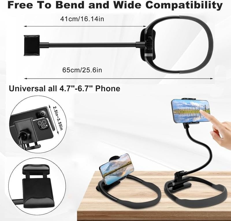[Real-Time Viewing during Recording] The neck phone holder features a 5-9 inch telescopic pole. Shortened to 5 inches, it's ideal for POV recording, keeping enough distance for clear live screen visibility and angle adjustments. When extended, it's perfect for selfies. Unlike other brackets that limit you to awkward diagonal shots, our extended reach allows effortless vertical shooting, ensuring your face is perfectly centered for professional-level compositions every time. ***Note: May feel heavier than regular POV phone holder due to the use of tougher materials and extended design.