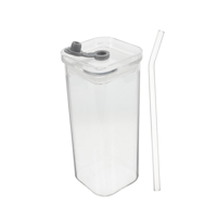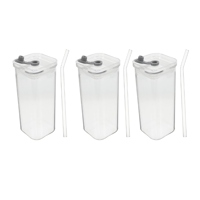 PACKAGE: 1/3/5*Stylish Square Glass Drink Cup with Lid and Straw