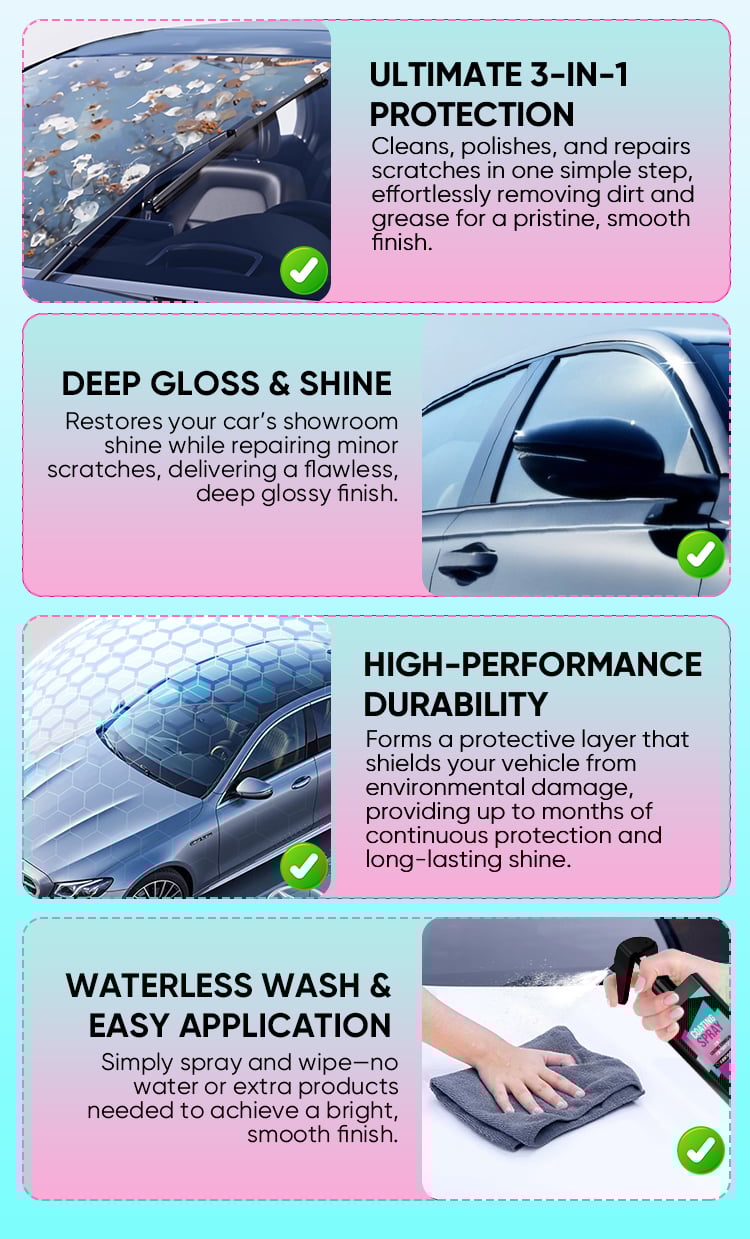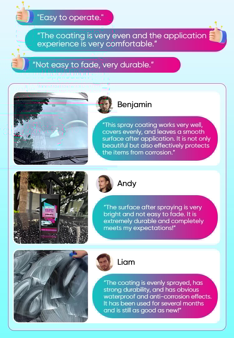 "As a car owner, I pay great attention to the appearance and protection of my car. The spray coating makes my car more resistant to dirt, water droplets slide off at the touch, and it is very convenient to clean. I really think it is a good product that every car deserves."