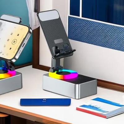 This speaker has great quality sound the led lights make it fun to watch while listening to your favorite music, easy to maneuver just unfold the phone holder and adjust it as you like.