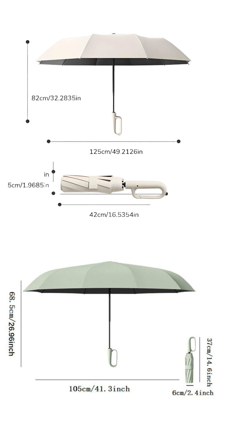The umbrella folds down small enough to fit easily into handbags, backpacks, or car glove compartments. Despite its compact size, it opens to a generous 105 cm or 125 cm canopy for full coverage.