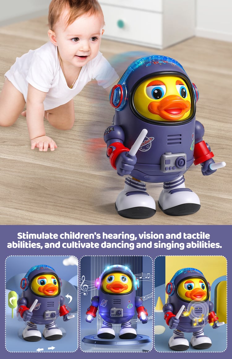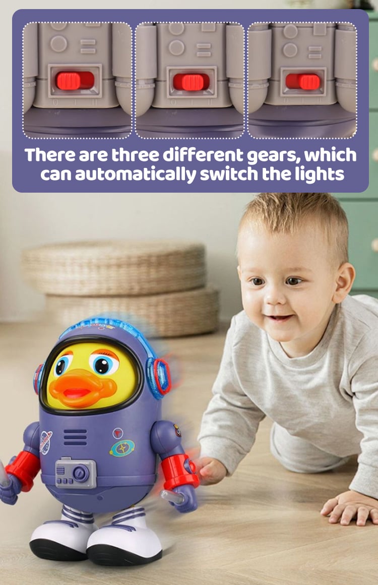 We bought this duck for him to play with on his tummy and now use it to crawl. It has captured our son's attention. It sings, wiggles and dances, and the lights can switch! Great review!
