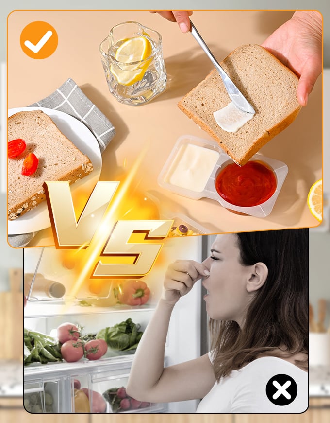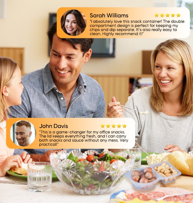 Snacks (such as vegetable strips, potato chips) and dipping sauces (such as salad dressing, yogurt, cheese sauce) should be placed separately to avoid moisture or cross flavors.