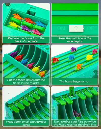 Suitable for family and friends of all ages. Each player selects a horse. When the seller selects and chooses to start, the turning gate will open to start the race. When the selected horse reaches the finish line, the first player wins.