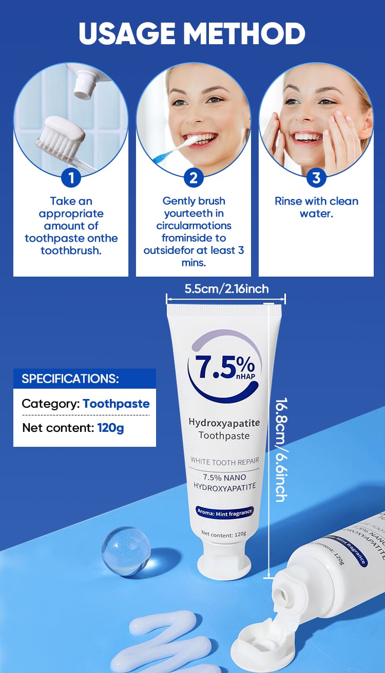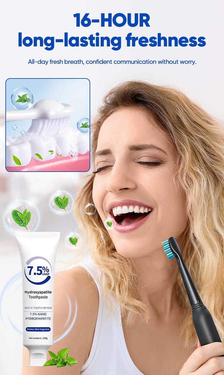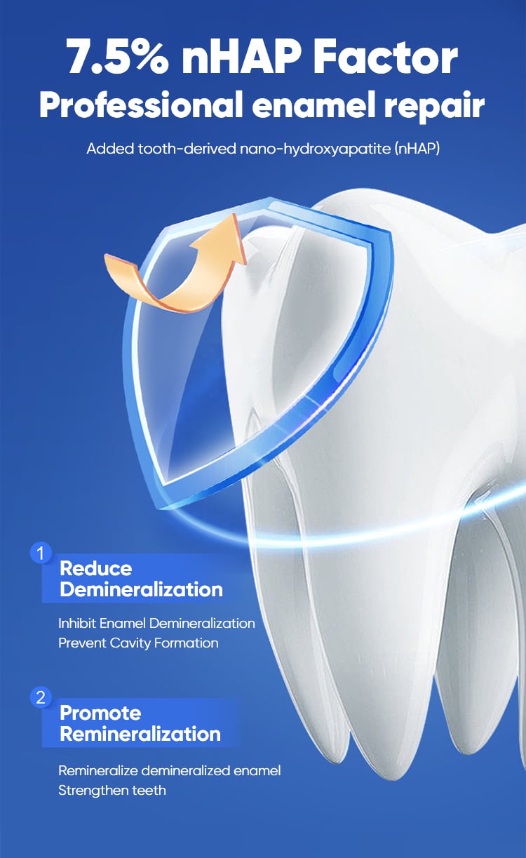 Fortified with 7.5% Nano Hydroxyapatite, this toothpaste effectively repairs enamel, strengthens teeth, and promotes a naturally whiter smile.