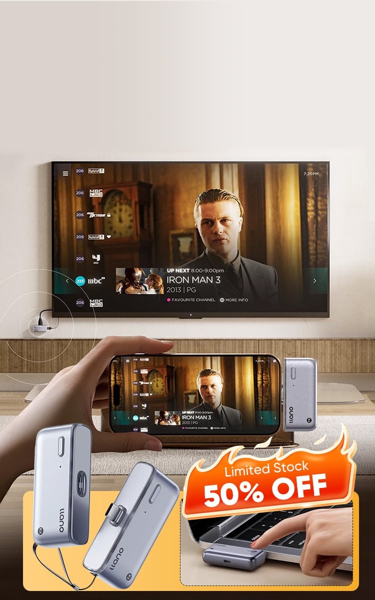 Turn Any Screen into a Theater with the Type-C Wireless HDMI Projector.