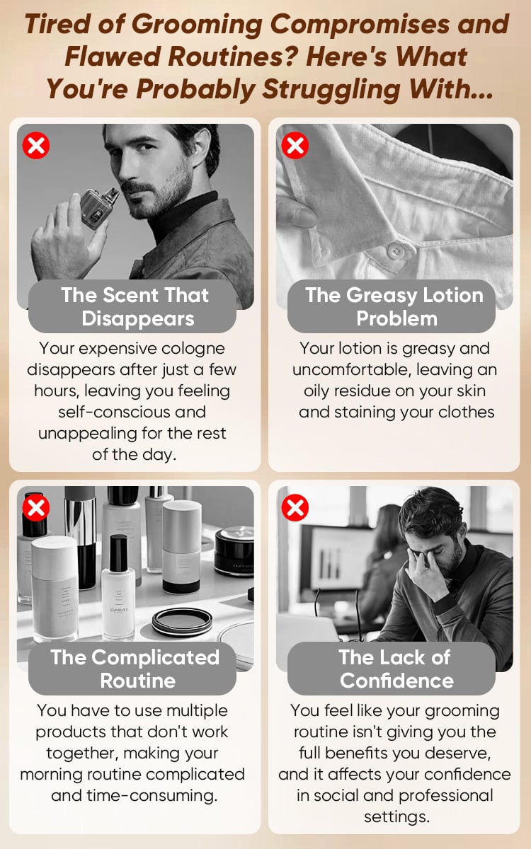 This product is perfect because it replaces both my lotion and cologne with one simple application. It saves me time and my skin has never looked better.