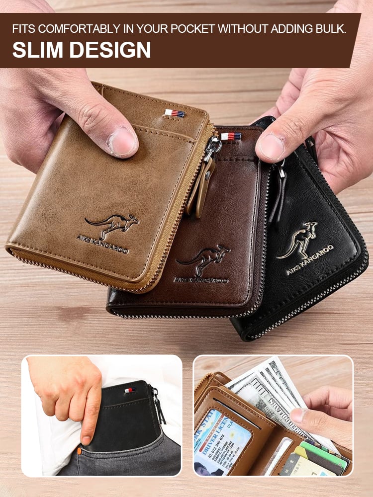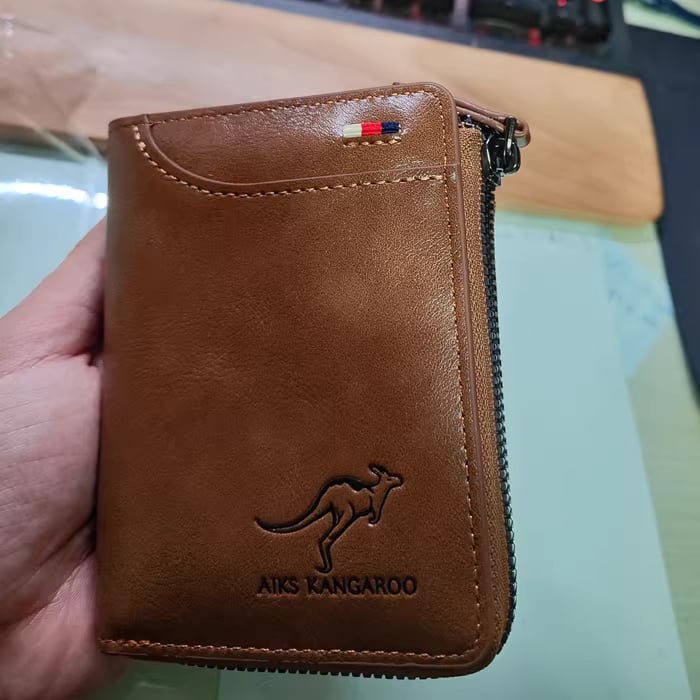 The leather is nice. I have enough storage for my stuff. It has a zippered section for your coins, which is very nice. It’s a very nice wallet. I would recommend it.