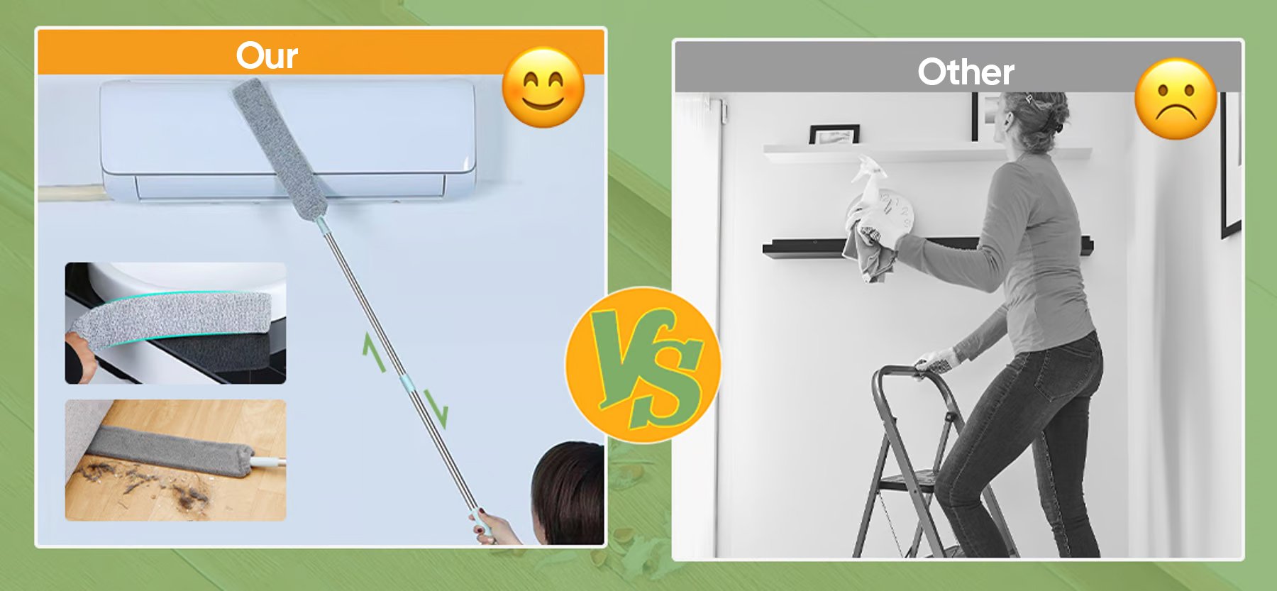 Retractable Flat Dusting Crevice Brush with Handle, sturdy and durable, our retractable flat dusting crevice brush does not shed bristles and can be used again and again. For many years.