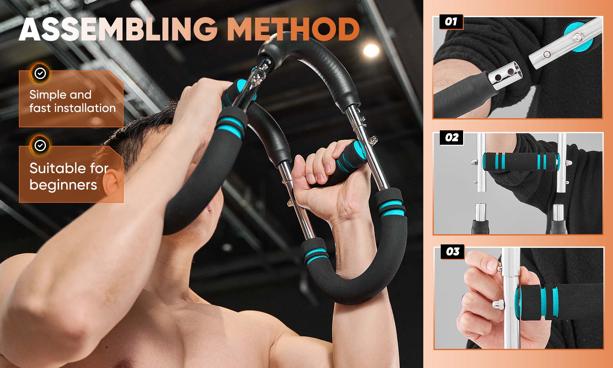 Whether you are a beginner or a professional athlete, it can help you with strength training—simple and practical. It's detachable, doesn't take up space, and you can use it to keep your muscles up when you're outdoors, traveling, in the office, or at home. It's a great addition to your gym. 10 min/time, 4 times/week, will give you perfect muscles.