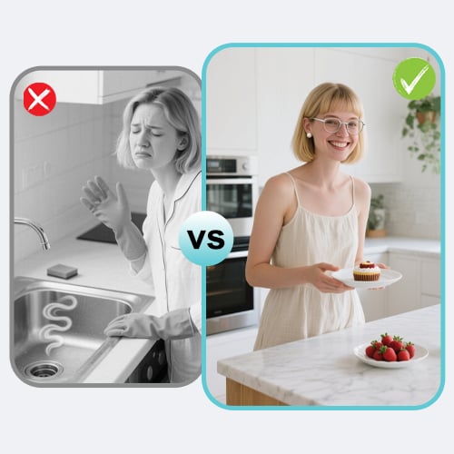 The Simple Secret to a Clog-Free Sink & A Fresh-Smelling Kitchen Without Plumber Visits Or a Messy Cleanup.