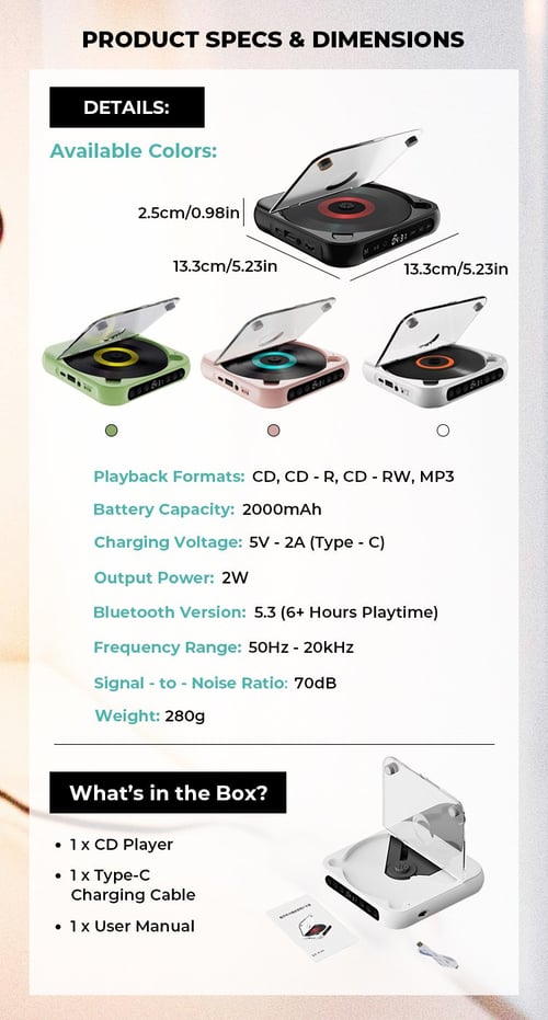 Yes, it supports CD, CD - R, CD - RW, and MP3 formats, which cover most types of CDs.