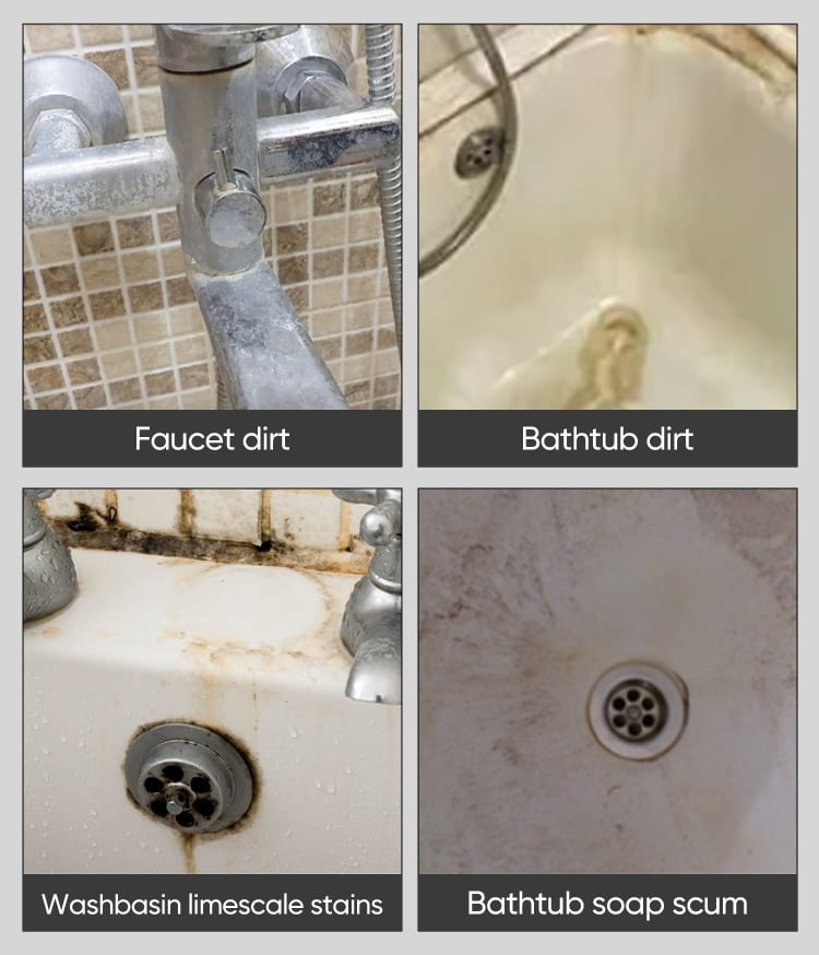 Widely used in toilets, squat toilets, urinals, washbasins, washstands, tiled walls, floors, glass, mirrors, bathtubs, taps, etc. Very suitable for cleaning bathrooms and kitchens, saves you a lot of time and energy.