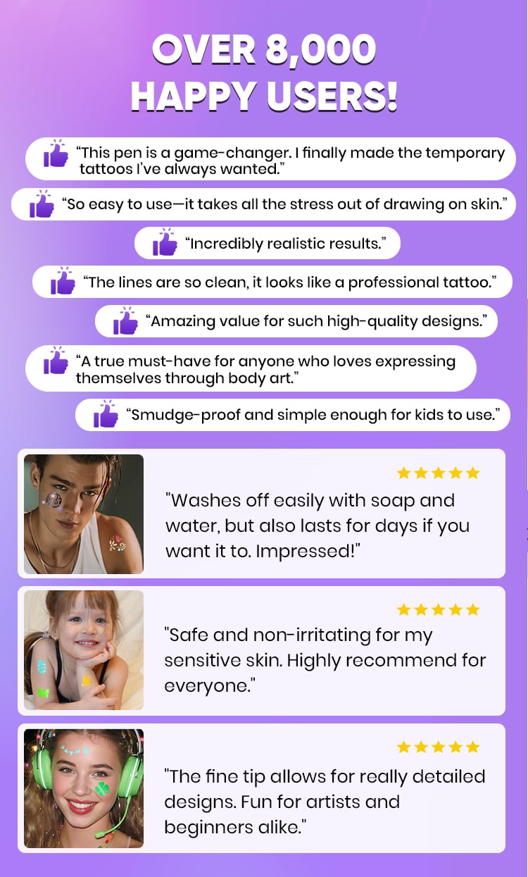 I was nervous about drawing my own tattoos, but this pen made it fun and easy. The results are stunning and look so real!
