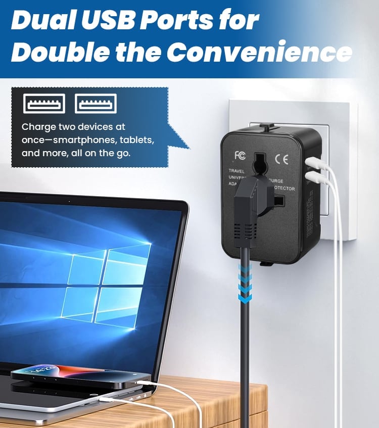 Perfect travel companion! Dual USB ports make it easy to charge multiple devices at once.